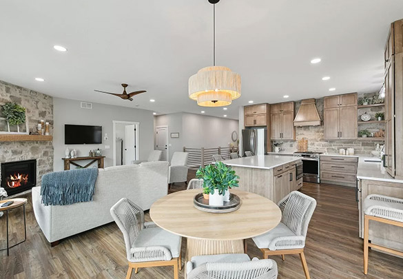 With vinyl plank flooring, you can create a dramatic look without compromising on comfort and functionality. Vinyl plank flooring is available in styles that closely resemble many timeless materials such as natural stone, ceramic, and even hardwood flooring. Available in an assortment of plank lengths and widths, vinyl plank flooring lets you create looks ranging from trendy to traditional.